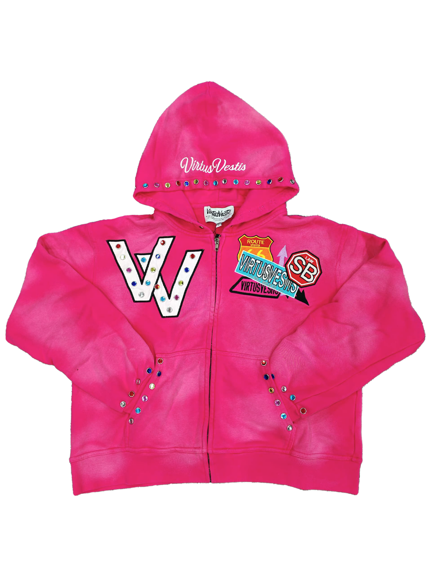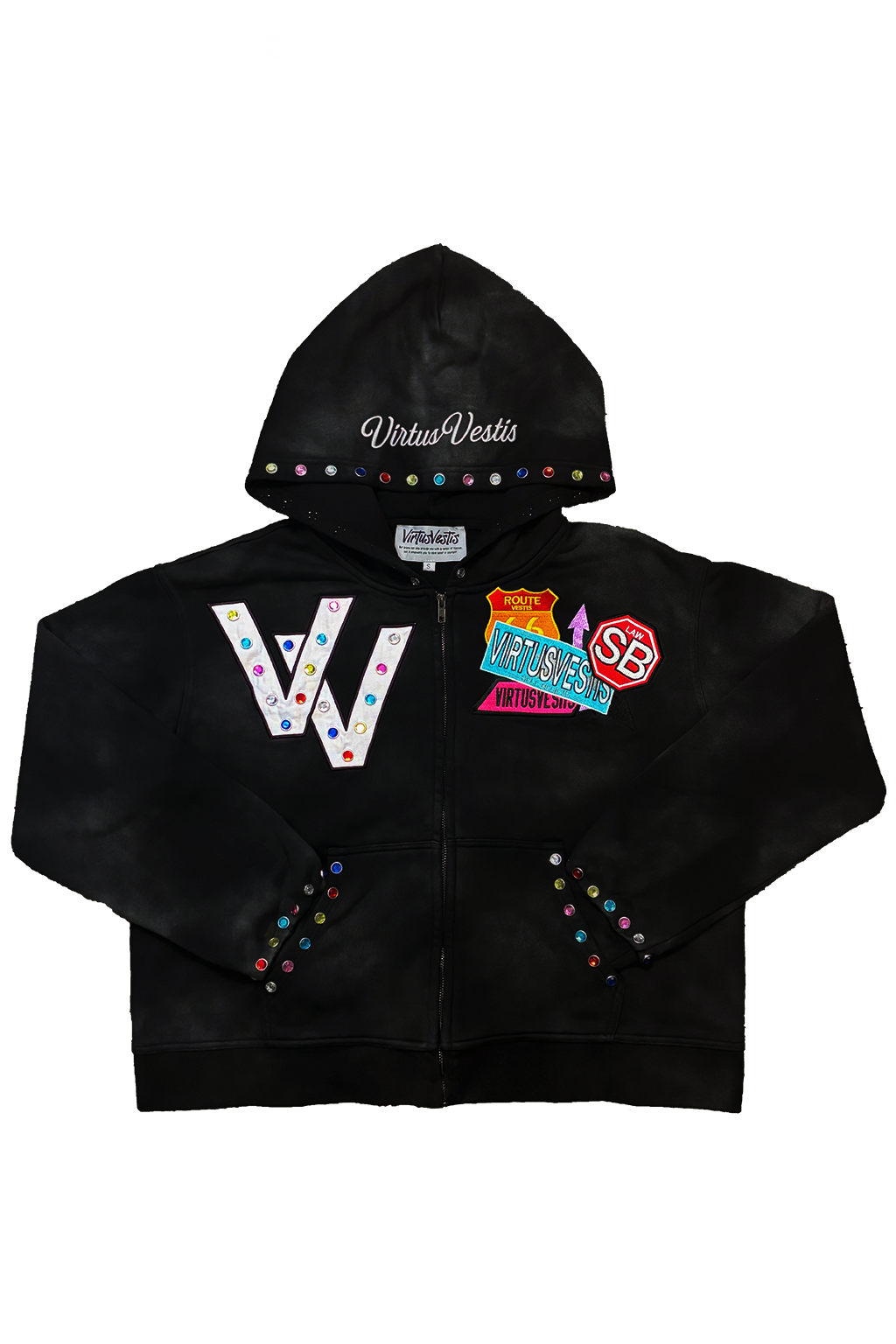 Im 5’3. Hoodie fits perfectly at my waist. Has good amount of weight to it and is easy to style. The gemstones also seems to be stitched into the fabric and didnt come off from any tugging.